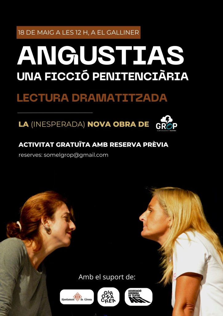 Amb humor negre, ironia, música en directe i molt surrealisme Angustias. Una ficció penitenciària parla dels les presons interiors i exteriors, que ens atrapen, i de la difícil recerca de la llibertat en un món marcat per l’èxit i la constant necessitat de sentir-se productiu.